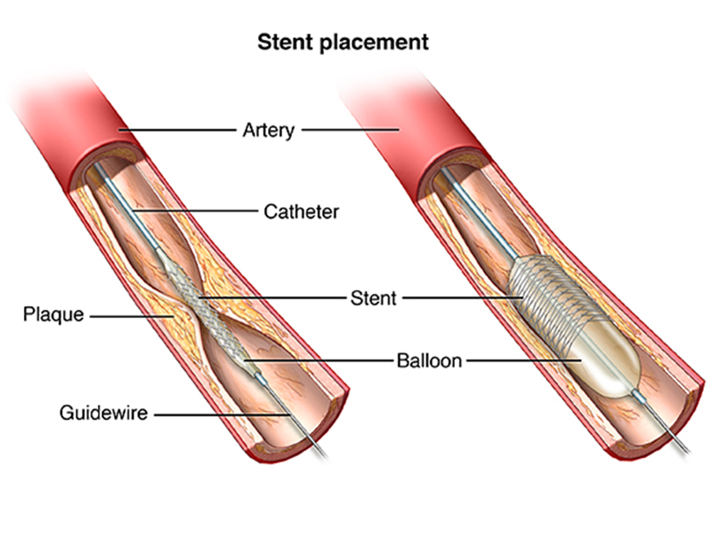A stent is a short, metal mesh tube that acts as a scaffold to help keep your artery open. The stent remains in the body permanently. There are two main types of stent: